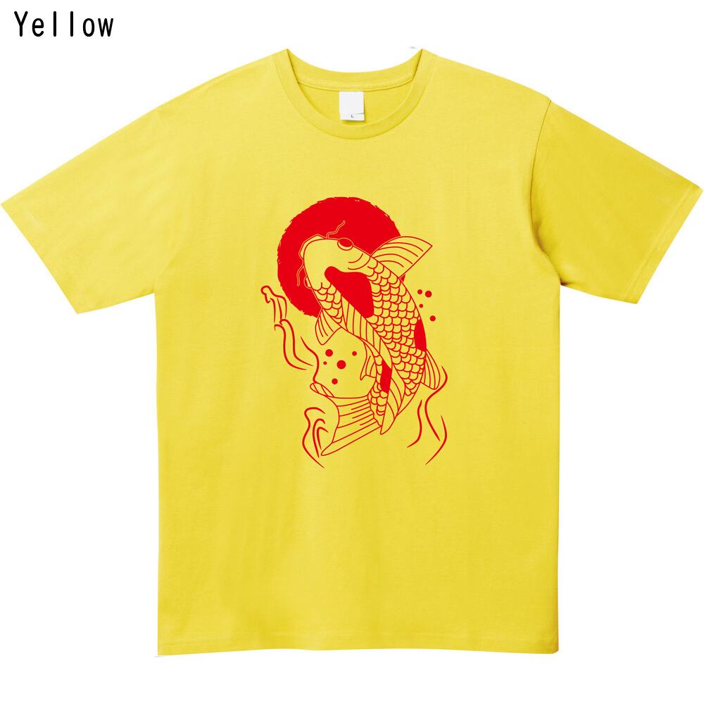 満月と錦鯉プリントTシャツは、日常のコーディネートにユニークなアクセントを加えてくれる一枚。