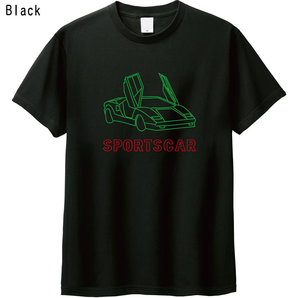 ネオンライト風のユニークなスポーツカーとロゴが、着る人の個性を際立たせます。