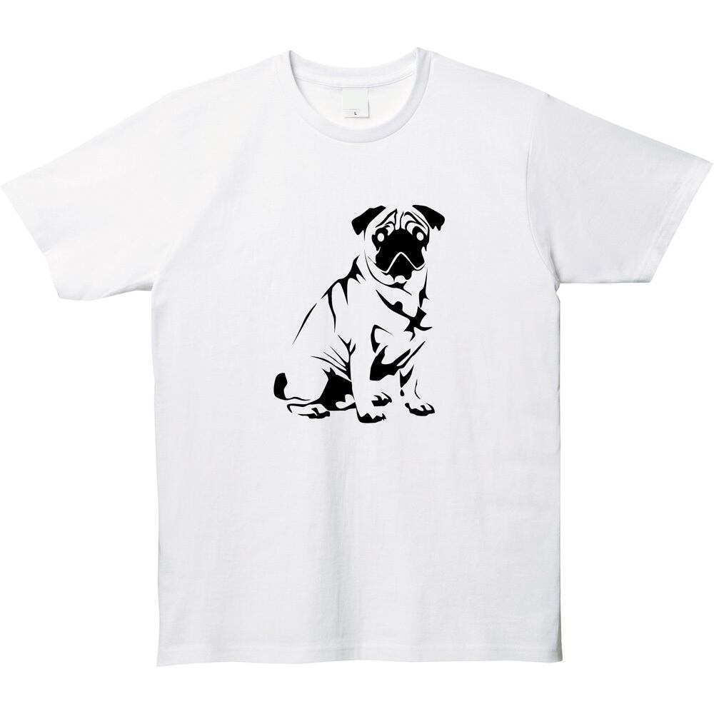 愛らしいパグのシルエットが特徴のこのTシャツは、カジュアルなスタイルにぴったりのアイテムです。